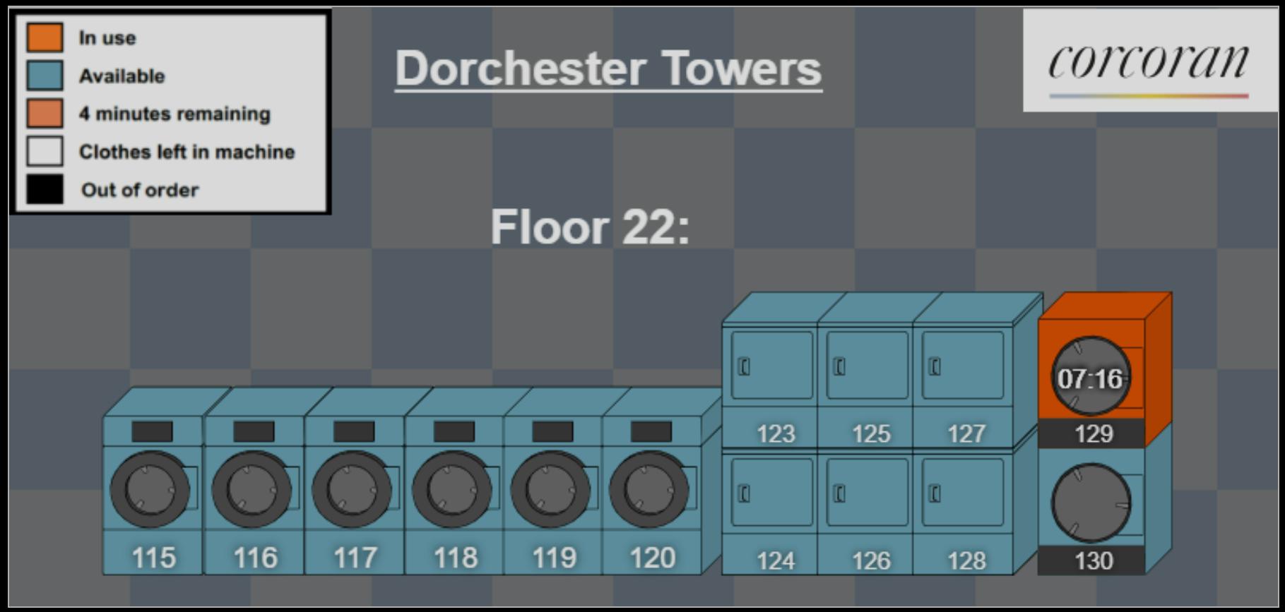 - Residents can select their laundry room and bookmark it on their phone, PC or tablet.